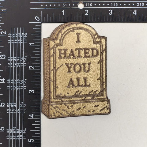 Measures approximately 2.75 by 4 inches with an iron on backing.