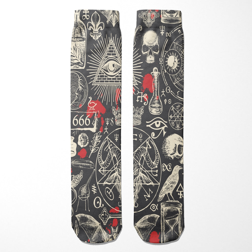 These aren’t your average socks. Made from 100% polyester, they feature moisture-wicking technology that keeps your feet dry and comfortable all day long. At 16 inches in length, they’re designed to stand tall and show off their bold, alternative-style fashion.