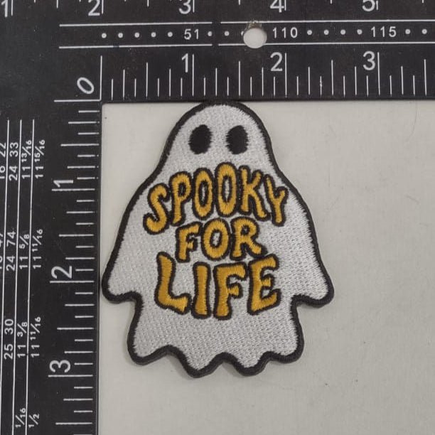 Measures approximately 2.5 by 3 inches with an iron on backing.